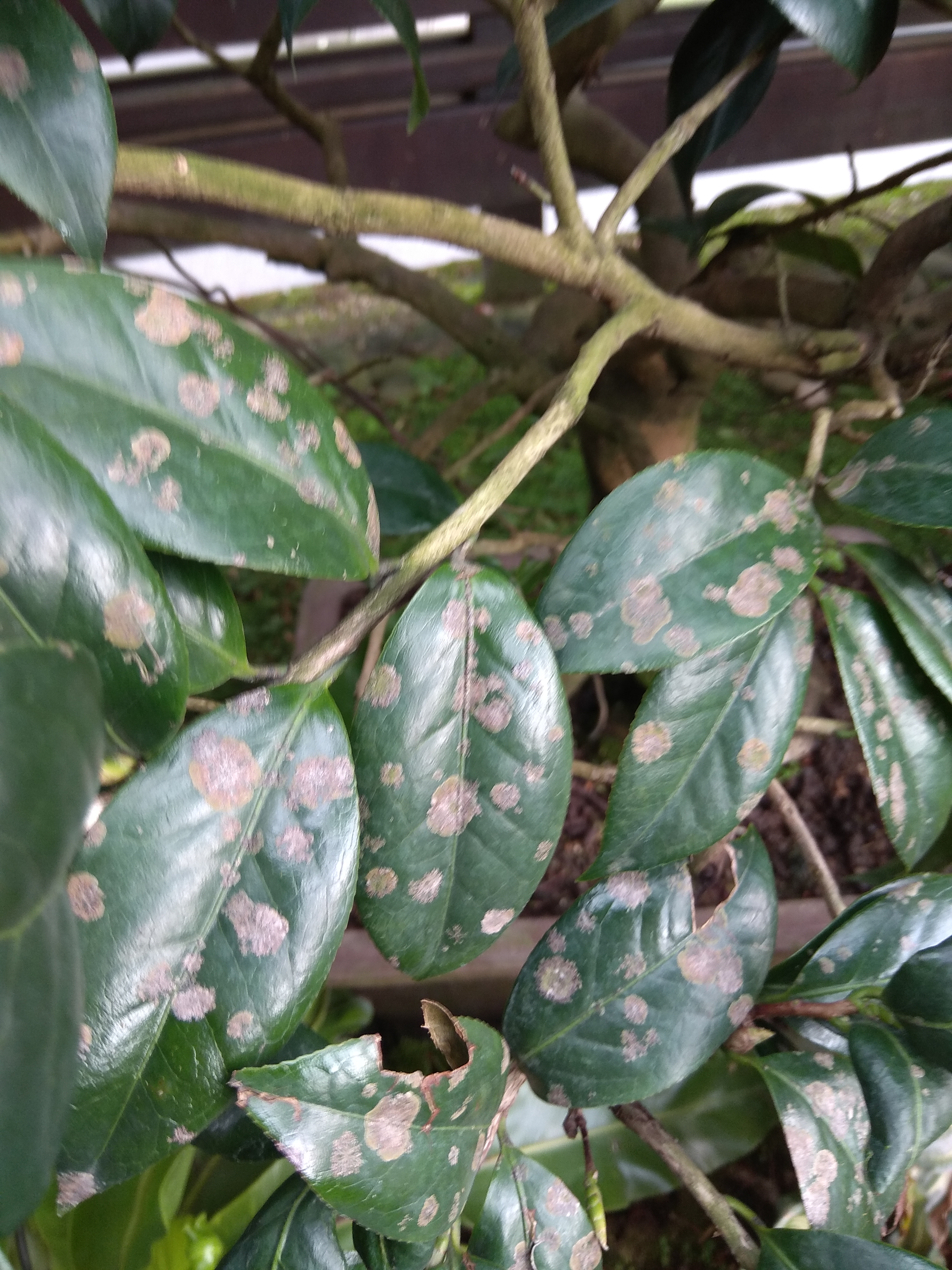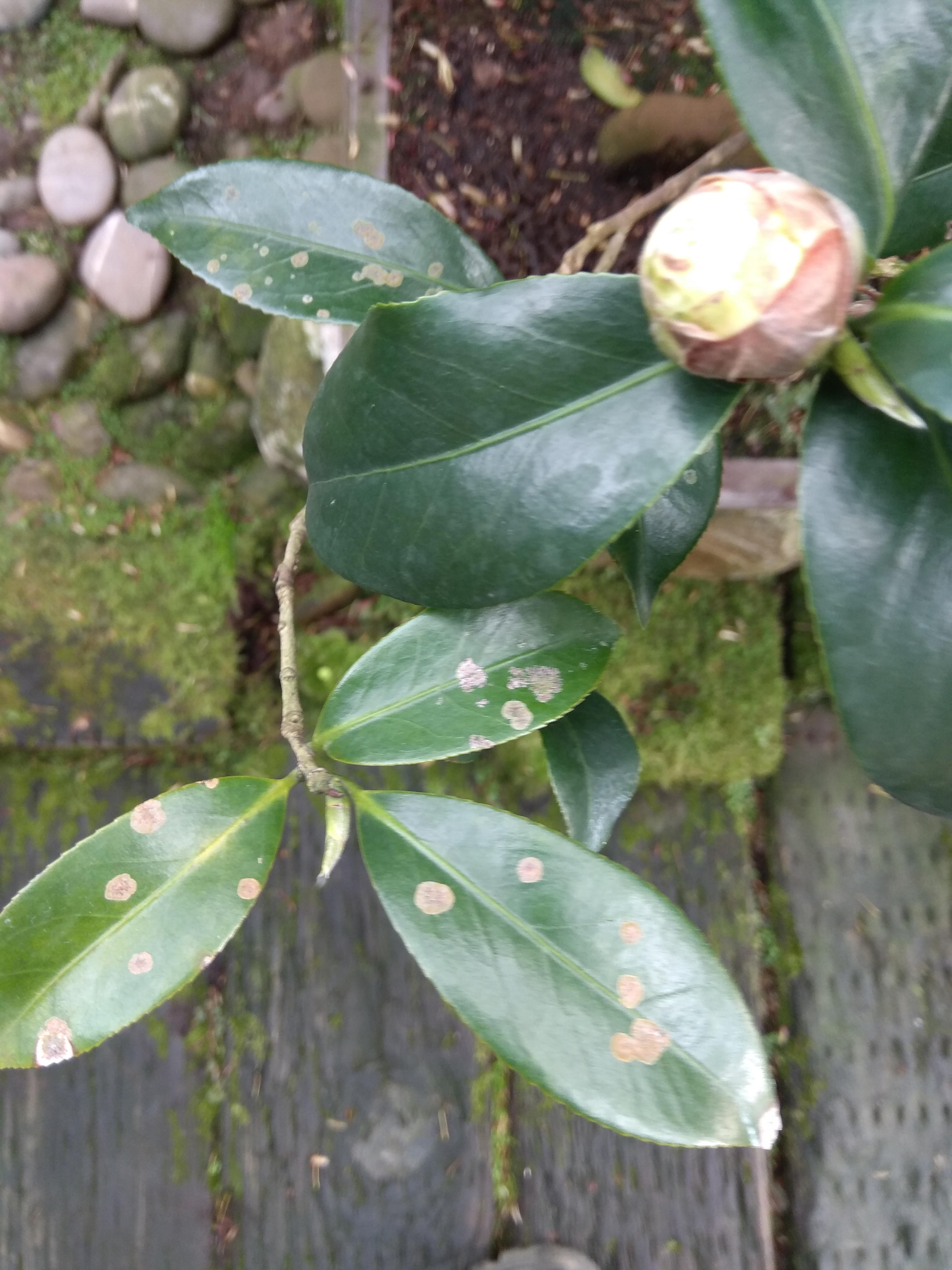 1、依提供茶花圖片資訊,初步判定為藻斑病危害。 適度修剪枝葉,避免生長過度茂密,保持環璄光照及通風良好,降低空氣中濕度。