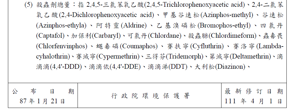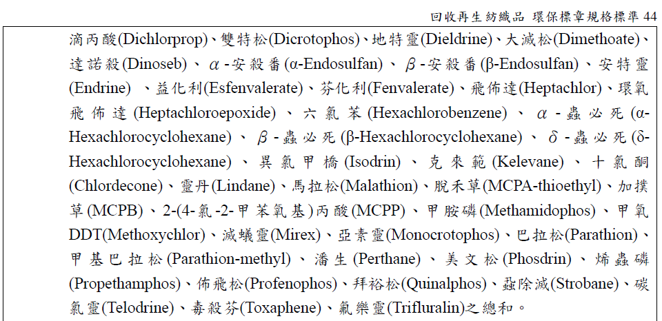 需求申請環保標章測試需求紡織提袋,內容有提到60項殺蟲劑,尤其是16三得芬Tridemorph24602-86-6 43脫禾草MCPA-thioethyl29450-45-1 這兩項?