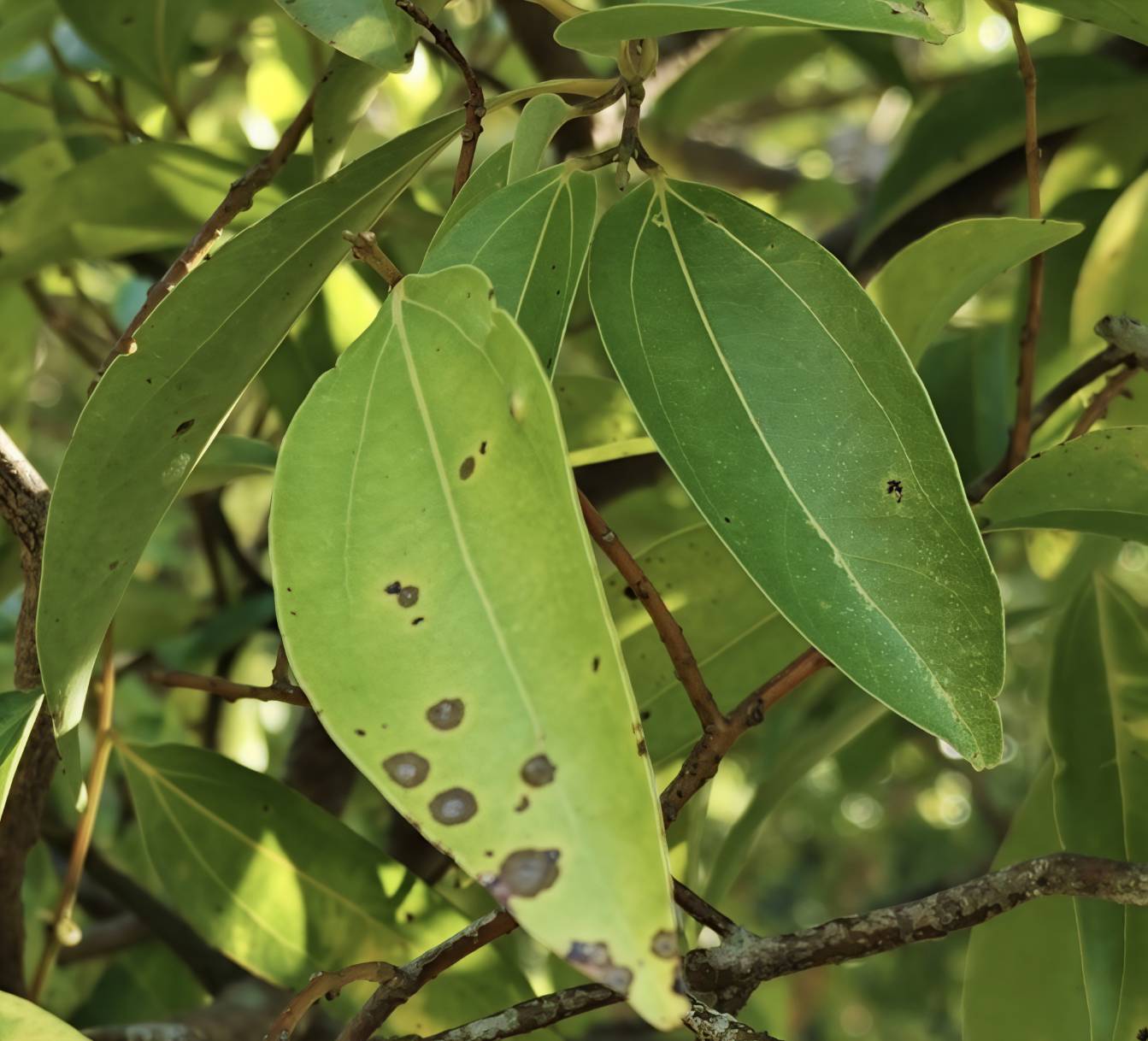 附圖中羊角拗上的黑斑是什麼疾病?